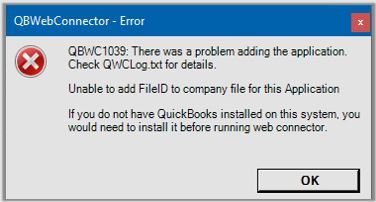 QBWC1039: There was a problem adding the application. Check QBWCLog.txt for details